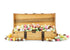Pakken blev leveret på den ønskede dato. Rigtig fin løsning med de fint forarbejdede trækister som indpakning til chokoladen.
