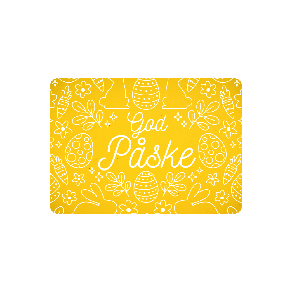 Som en ekstra service inkluderer vi et gratis kort med jeres personlige påskehilsen og logo i alle vores firmagaver. På den måde kan I sende en personlig og professionel påskehilsen, der styrker relationerne til dem, der betyder noget for jer.
